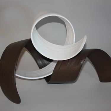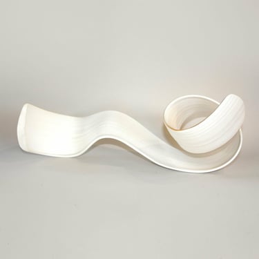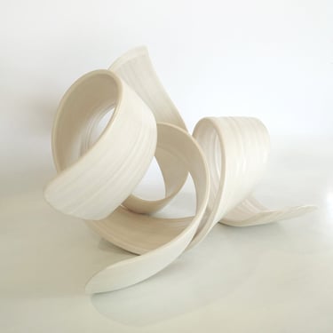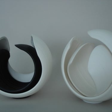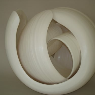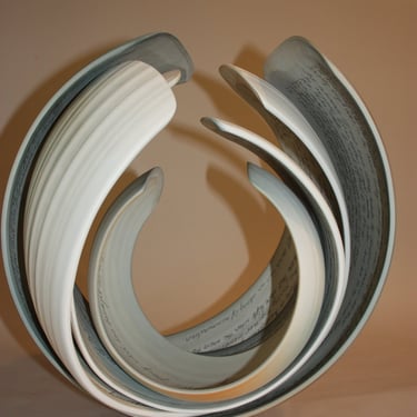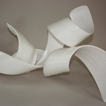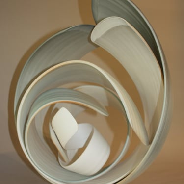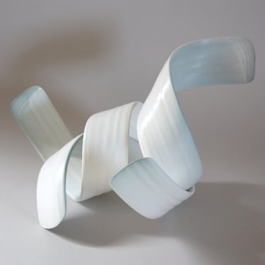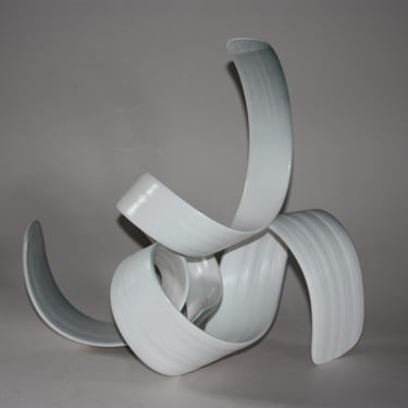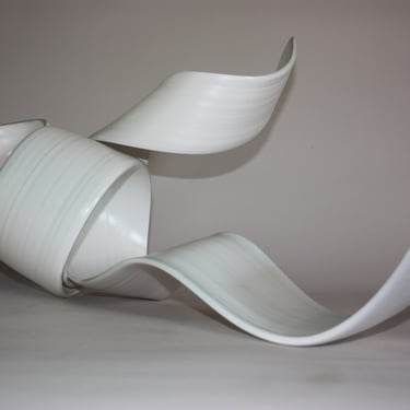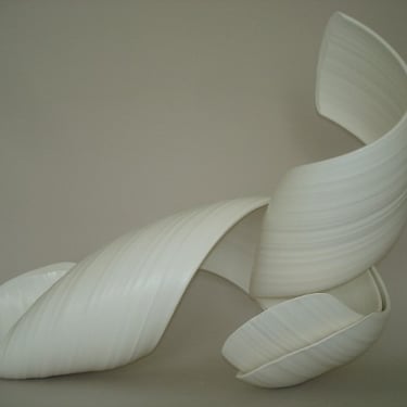 With my ceramic works, I combine handbuilding and throwing techniques, frequently allowing the stoneware clay shared agency between clay and maker to create the form while engaging with and guiding the form. Between firings in the kiln, surfaces are sealed with Terra-Sigilata and/or under-glaze. With a crisp white palette, I leave the ceramic form relatively uninhabited colour, preferring only to emphasise the flow of the form with very subtle tones of grey blues or warm light bronzes.